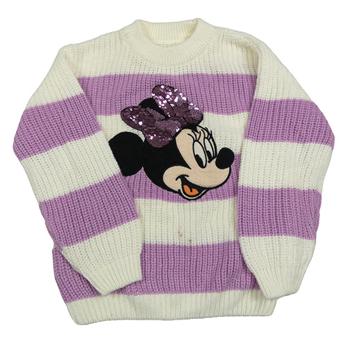 Smetanovo-levandulový pruhovaný svetr s Minnie s překlápěcími flitry C&A