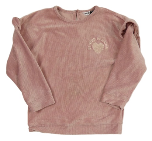 Světlerůžová sametová žebrovaná mikina se srdíčkem a volánky Pep&Co