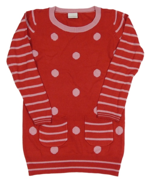 Červeno-růžová puntíkatá svetrová tunika s pruhovanými rukávy Next