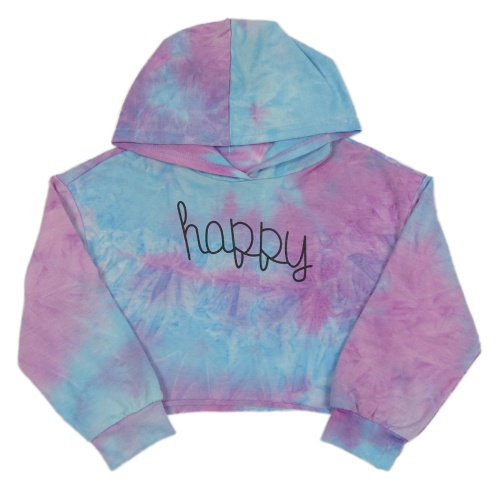 Tmavorůžovo-modrá batikovaná crop mikina s nápisem a kapucí Shein