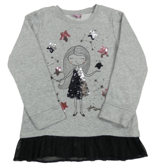 Šedá melírovaná mikina s divkou a hvězdami z překlápěcích flitrů Dopodopo