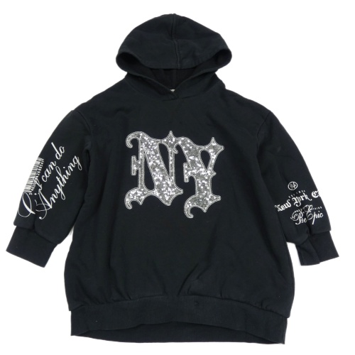 Černá mikina s písmenky s flitry a nápisy a kapucí RIVER ISLAN