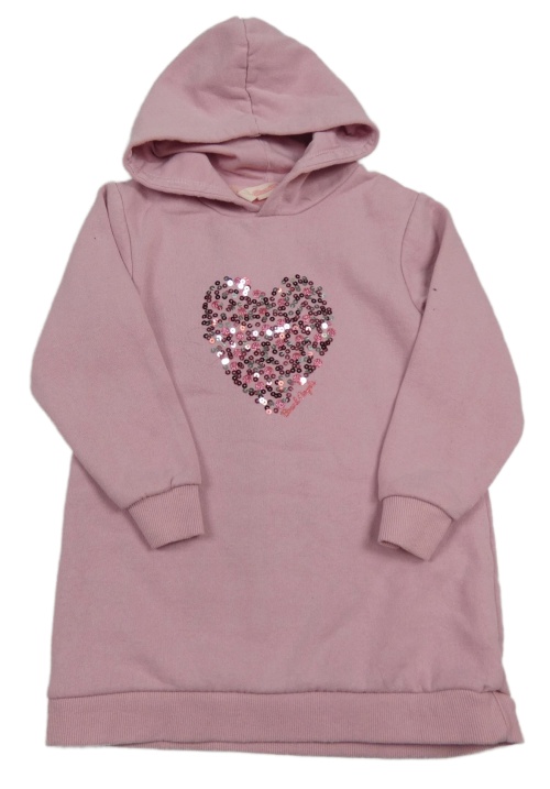 Světlerůžová dlouhá mikina se srdíčkem z flitrů a kapucí Board Angels
