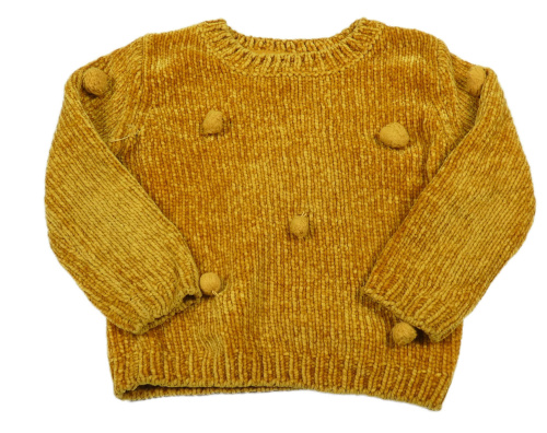 Hořčicový žinylkový svetr s bambulkami Primark