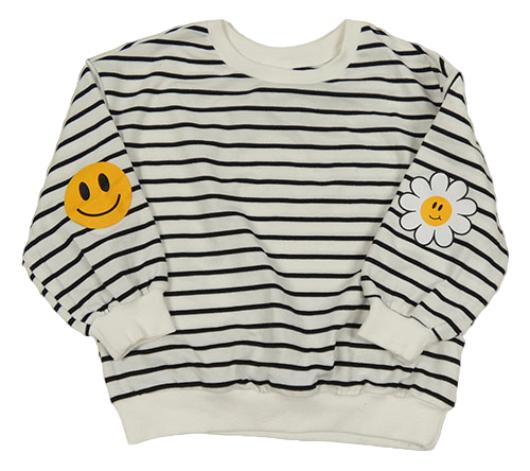 Bílo-černá pruhovaná mikina s květinou a smajlíkem na rukávech Shein