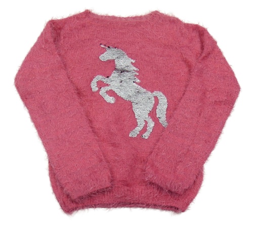 Růžový chlupatý svetr s jednorožcem z flitrů Dopodopo