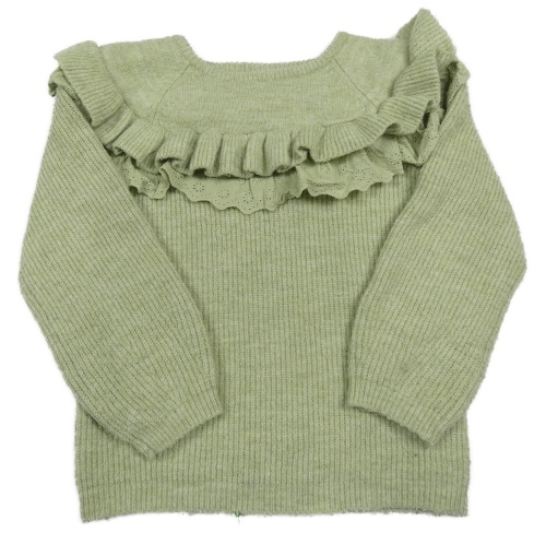Olivový melírovaný žebrovaný svetr s volánky a madeirou George