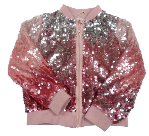 Růžovo-stříbrná flitrová podšitá propínací mikina H&M