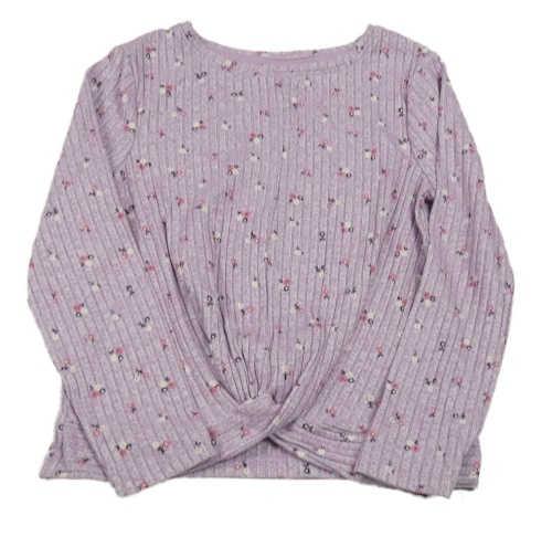 Fialový žebrovaný svetr s překřížením a kytičkami Topolino