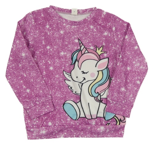 Růžovo-bílá vzorovaná mikina s jednorožcem Shein