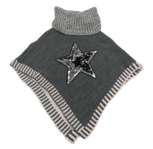 Šedo-světlerůžové pletené pončo s hvězdičkami z flitrů a rolákem