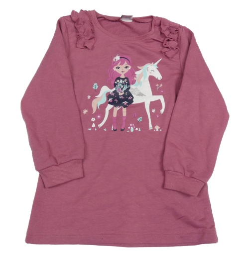 Růžová šatová mikinová tunika s dívkou a volánky Kiki&Koko