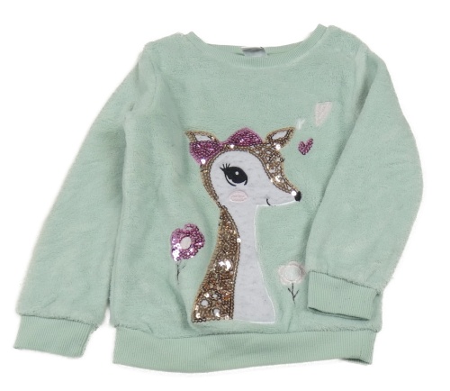 Světlezelená chlupatá mikina se srnkou z flitrů Kiki&Koko
