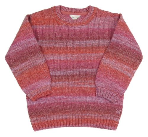 Jahodovo-tmavorůžovo-fialový melírovaný svetr CREW
