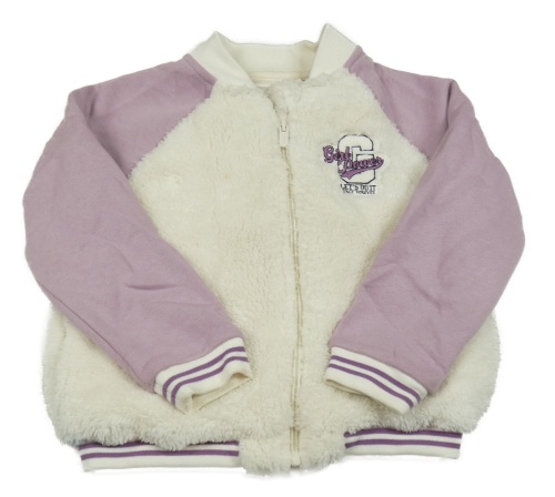 Bílo-fialová chlupato/tepláková propínací mikikna s nápisem Orchestra
