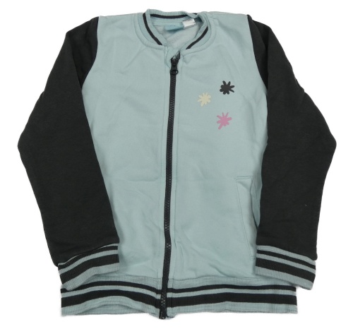 Světlemodro-tmavošedá propínací mikina se skvrnkami a pruhy a zebrou lupilu