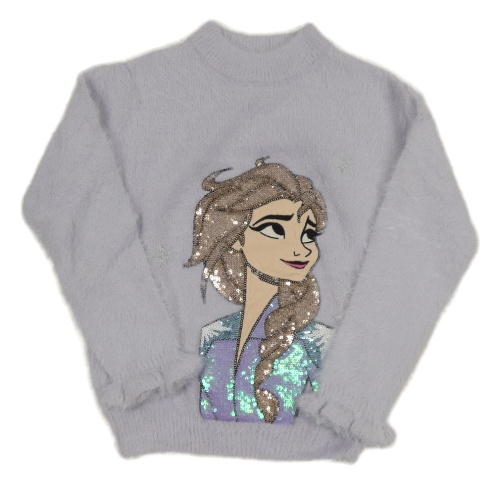 Levandulový chlupatý svetr s Elsou a flitry C&A
