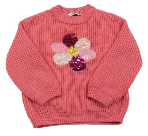 Tmavorůžový svetr s květinou z překlápěcích flitrů C&A