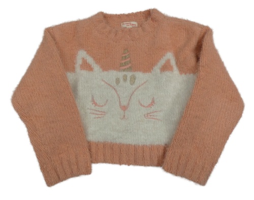 Starorůžovo-bílý chlupatý crop svetr s kočkou
