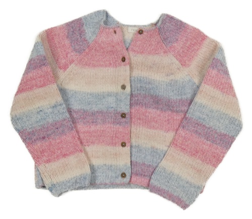 Růžovo-smetanovo-modrý pruhovaný propínací žinylkový crop svetr Next