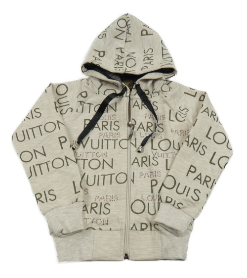 Béžová melírovaná propínací mikina s nápisy a kapucí