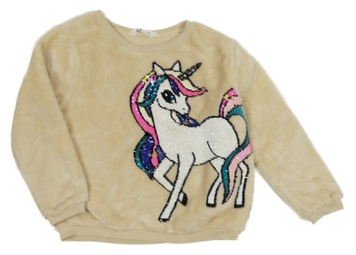 Světlebéžová plyšová mikina s jednorožcem z překlápěcích flitrů H&M