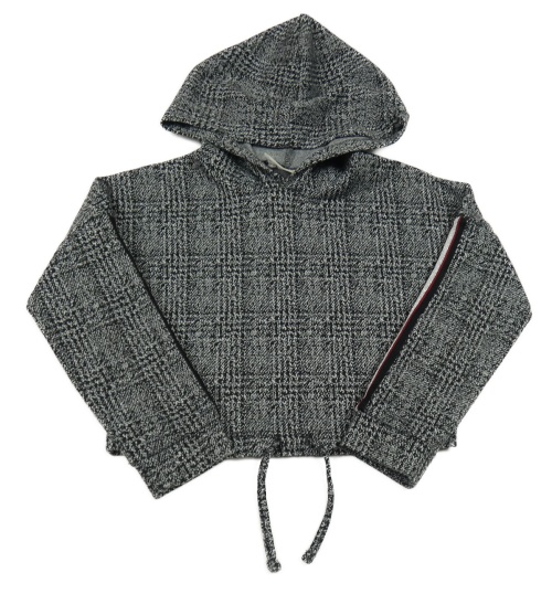 Černo-bílo/světlešedá kostkovaná vzorovaná melírovaná úpletová crop mikina s pruhy a kapucí Matalan