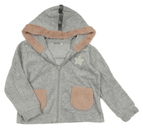 Šedá sametová propínací mikina s kožíškem a kapucí Sarahanda