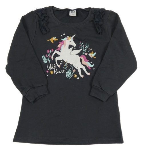 Tmavošedá mikinová tunika s jednorožcem a volánky Kiki&Koko