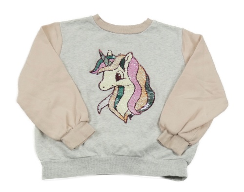 Šedo-broskvová oversize mikina s jednorožcem z flitrů