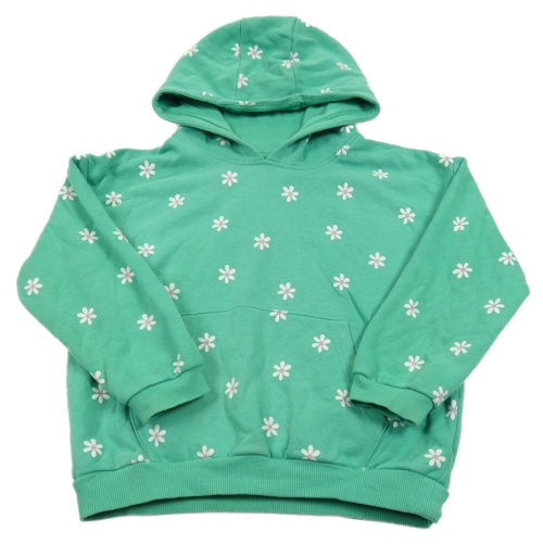 Zelená oversize mikina s květy a kapsou a kapucí George