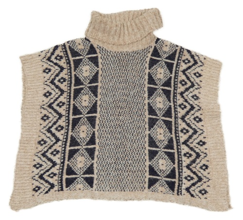 Světlerůžovo-tmavomodé vzorované pletené pončo s rolákem Matalan