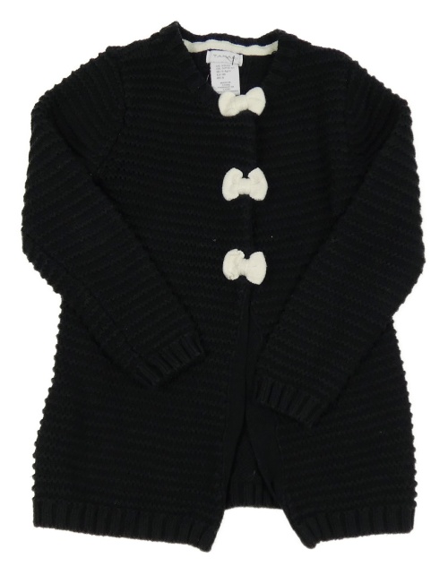 Černý žebrovaný propínací svetr s mašlemi TAHARI