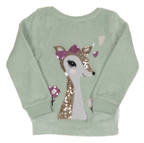 Světlezelená chlupatá mikina se srnkou z flitrů Kiki&Koko
