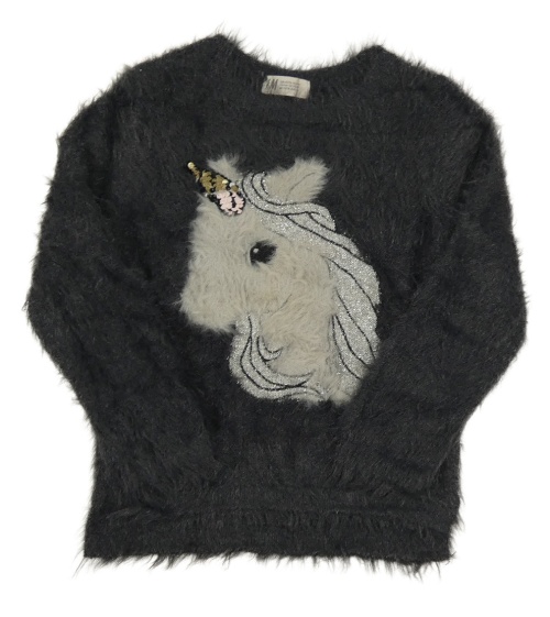 Antracitový chlupatý svetr s jednorožcem H&M