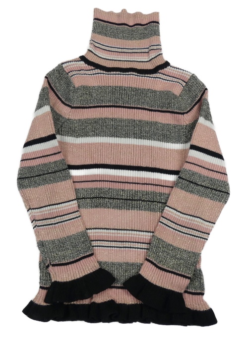 Růžovo-šedo-bílý pruhovaný žebrovaný svetr s rolákem Primark