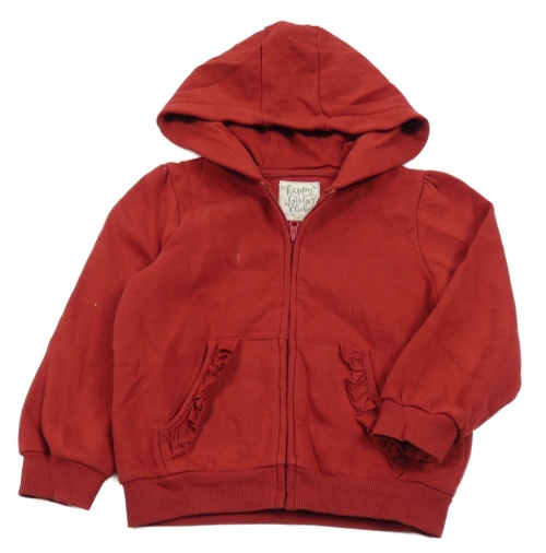 Tmavočervená propínací mikina s volánky a kapucí C&A