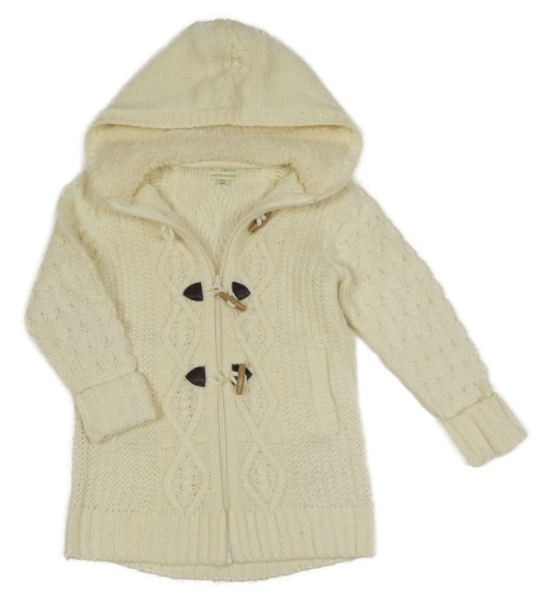 Smetanový propínací svetr s kapucí Vertbaudet