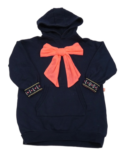 Tmavomodrá šatová mikina s 3D mašlí a kapucí