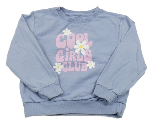 Lila mikina s nápisem a kytičkami