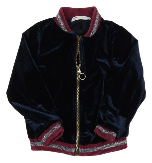 Tmavomodrý sametový podšitý bomber s pruhy M&S
