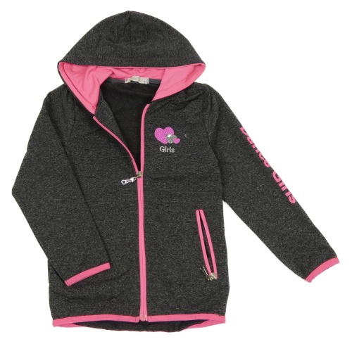 Černo-šedá melírovaná propínací mikina se srdíčky a kapucí