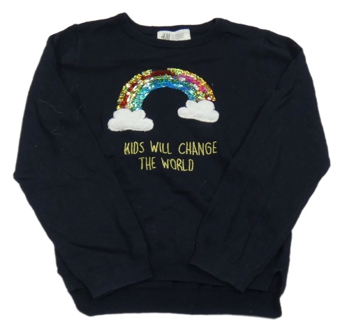 Tmavomodrý svetr s duhou z překlápěcích flitrů H&M