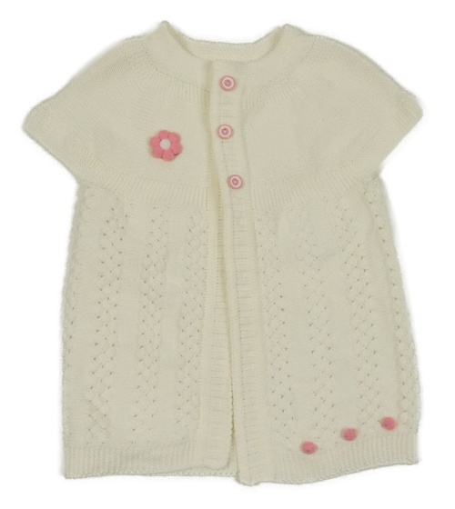 Smetanová pletená propínací vesta s 3D květem
