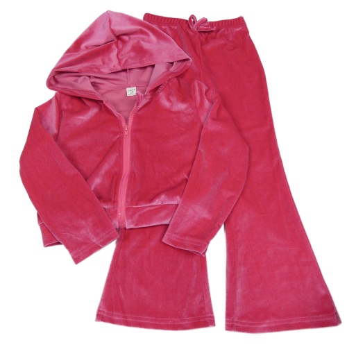 2set - Fuchsiová sametová propínací crop mikina s kapucí + flare tepláky Shein