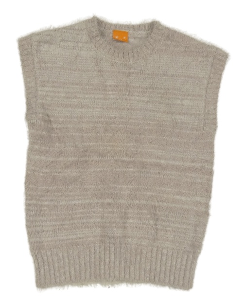 Světlefialovošedo-bílá pruhovaná/melírovaná chlupatá svetrová vesta PUSBLU