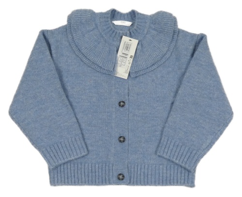 Nové - modrý melírovaný propínací svetr s volánky M&S