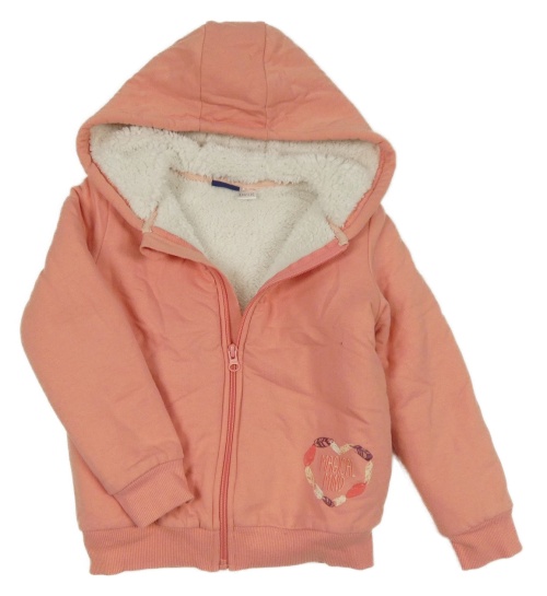 Broskvová propínací zateplená mikina s nápisy a pírky a kapucí lupilu