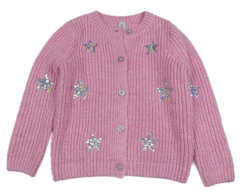 Růžový propínací svetr s hvězdami z flitrů Tu