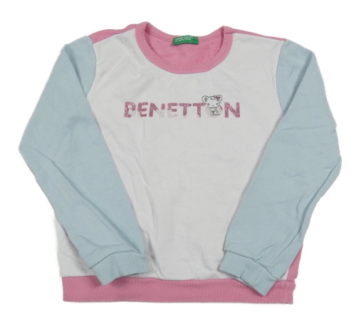 Bílo-světlemodro-růžová mikina s logem Benetton